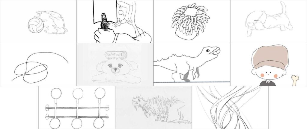 「触れることから考える」をモチーフを実際に触ることをきっかけとし、アニメーション技法「メタモルフォーゼ」で制作している。