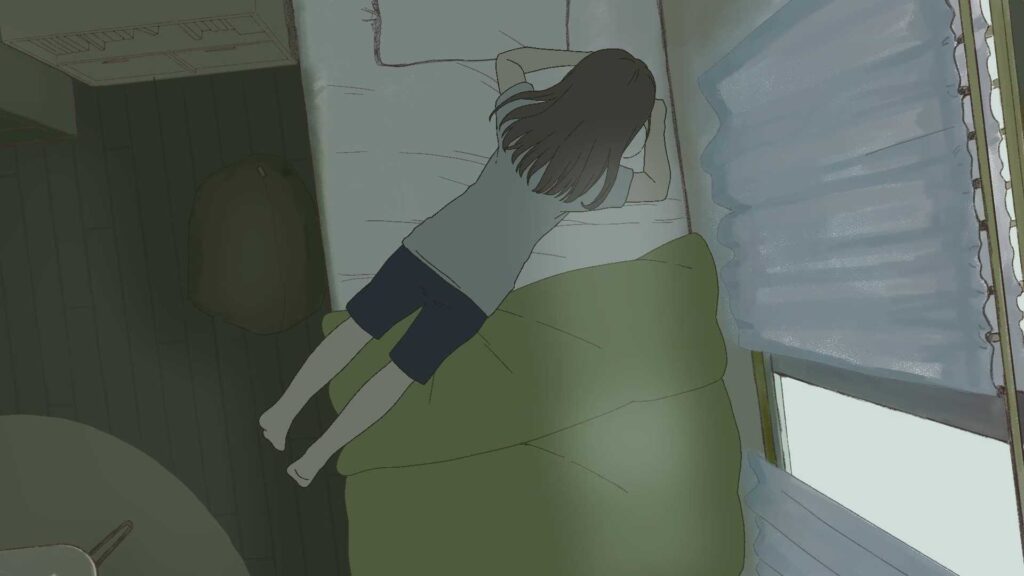キャラクターが日常生活を送る中での細かい仕草を丁寧に描写することを目標に制作した。リラックスして鑑賞できる作品にしたいという思いがあり、人物が帰宅してから睡眠や生き物との触れ合いを通して疲れている状態から精神的に回復していく様子を表現した。
